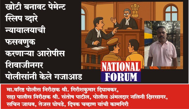 शिवाजीनगर पोलीस स्टेशन हद्दीतील, जिल्हा व सत्र न्यायालय शिवाजीनगर येथे जामीनासाठी खोटे सात बारा उतारे, बनावट प्रॉपर्टी कागदपत्रे आता तर बनावट पगार पावती देणाराला शिवाजीनगर पोलीसांनी गजाआड केले आहे. न्यायालयात एखादा कागद सादर केल्यानंतर, तो खरा आहे की खोटा आहे, हे तपासण्याचे काम महसुल विभागाकडे आहे. न्यायालय केवळ सर्टीफाईड म्हणजे खरी नक्कल प्रत देण्याचे काम करते, परंतु ते खरे की खोटे हे तपासण्यासाठी कोर्टाकडे तशी यंत्रण उपलब्ध नसल्यामुळे वर्षानुवर्षे कोर्टात बनावट कागदपत्रे देवून, न्यायालयाची फसवणूक करण्याचे प्रकार वाढलेले आहेत. शिवाजीनगर पोलीसांनी सातत्याने अशा प्रकारांना पायबंद घालण्याचा प्रयत्न केला तरी, नव नवीन प्रकरणे समोर येत आहेत.