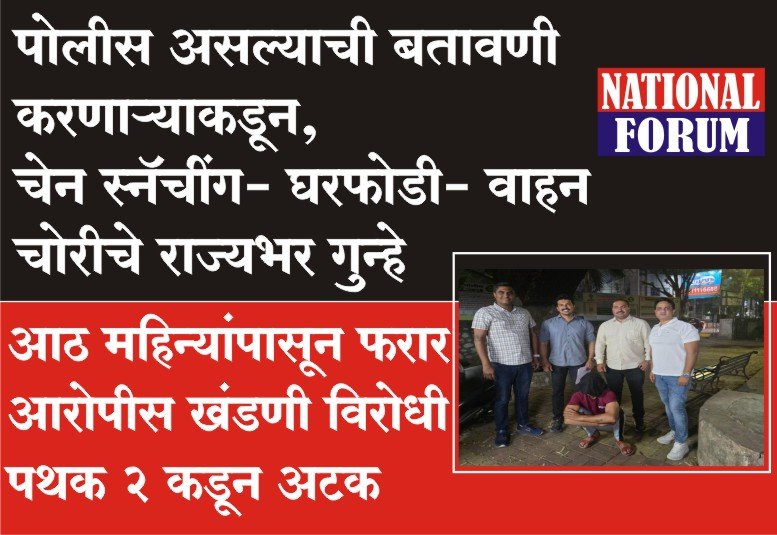 पोलीस असल्याची बतावणी करून संपूर्ण राज्यात चेन स्नॅचींग, घरफोडी, वाहन चोरी करणाऱ्या सराईत आरोपीस खंडणी विरोधी पथक क्र. 2 ने शिताफीने अटक केली आहे. मागील 8 महिन्यांपासून पोलीसांना गुंगारा देवून पळत होता. परंतु अखेर पोलीसांनी जमावातून देखील त्याला ओळखुन पकडण्यात यश आले आहे.